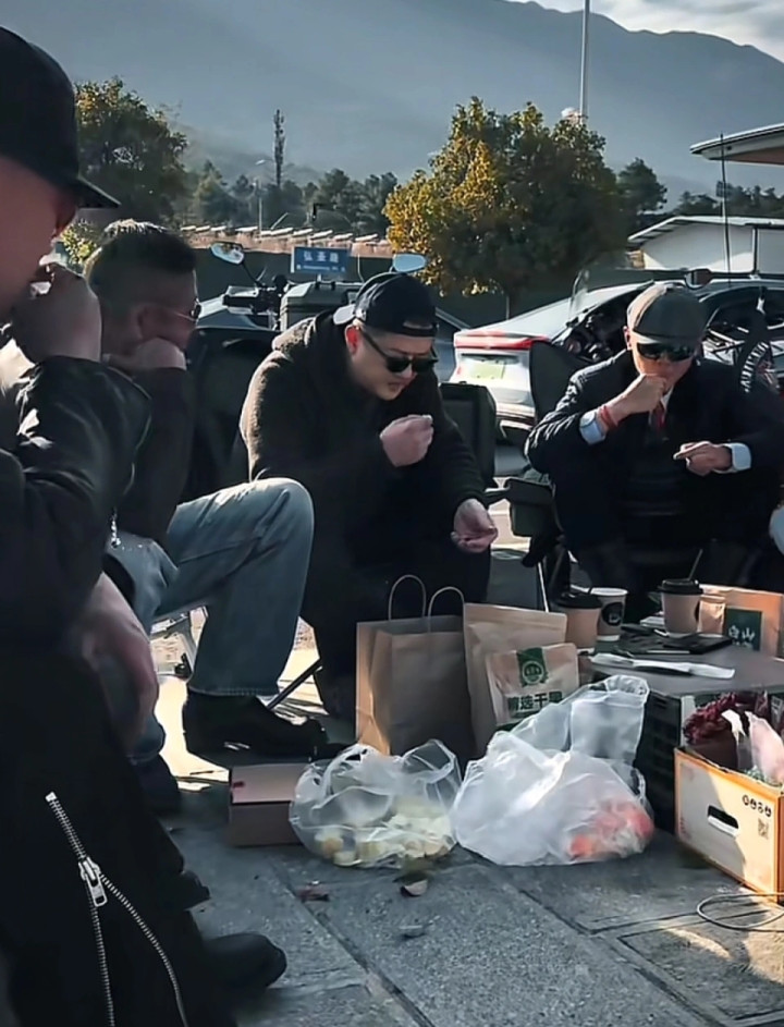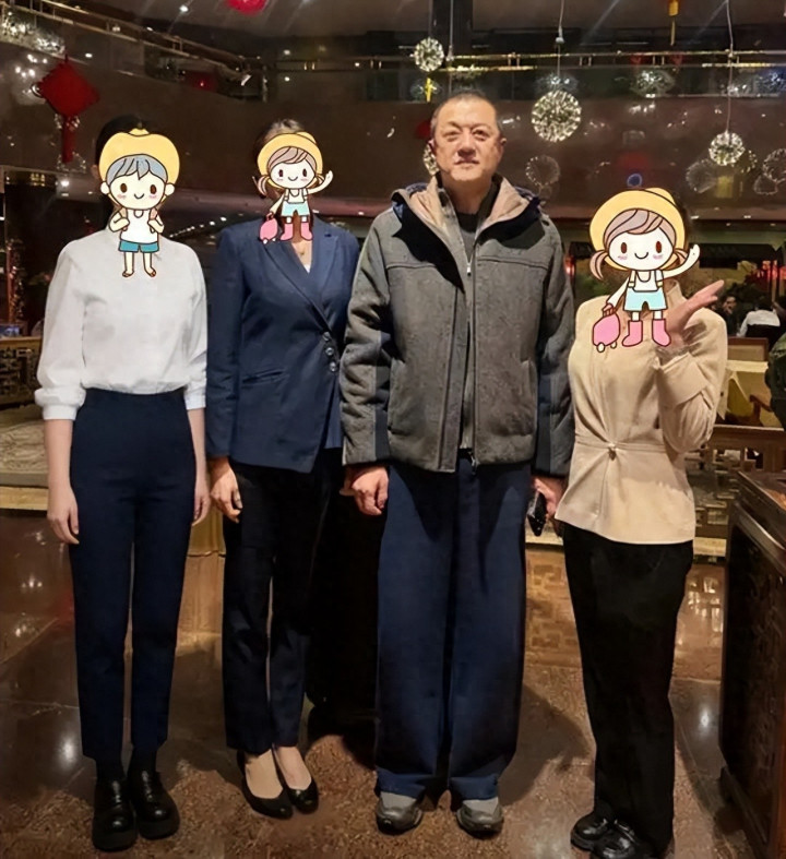更刺眼的不是合影的东谈主,是他那身衣服:灰色连帽外衣、深蓝色直筒裤、灰色开通鞋,鞋面看得出穿了不少回,裤脚也不算新。有东谈主在傍边陈思:“这裤子怎样又是它?”