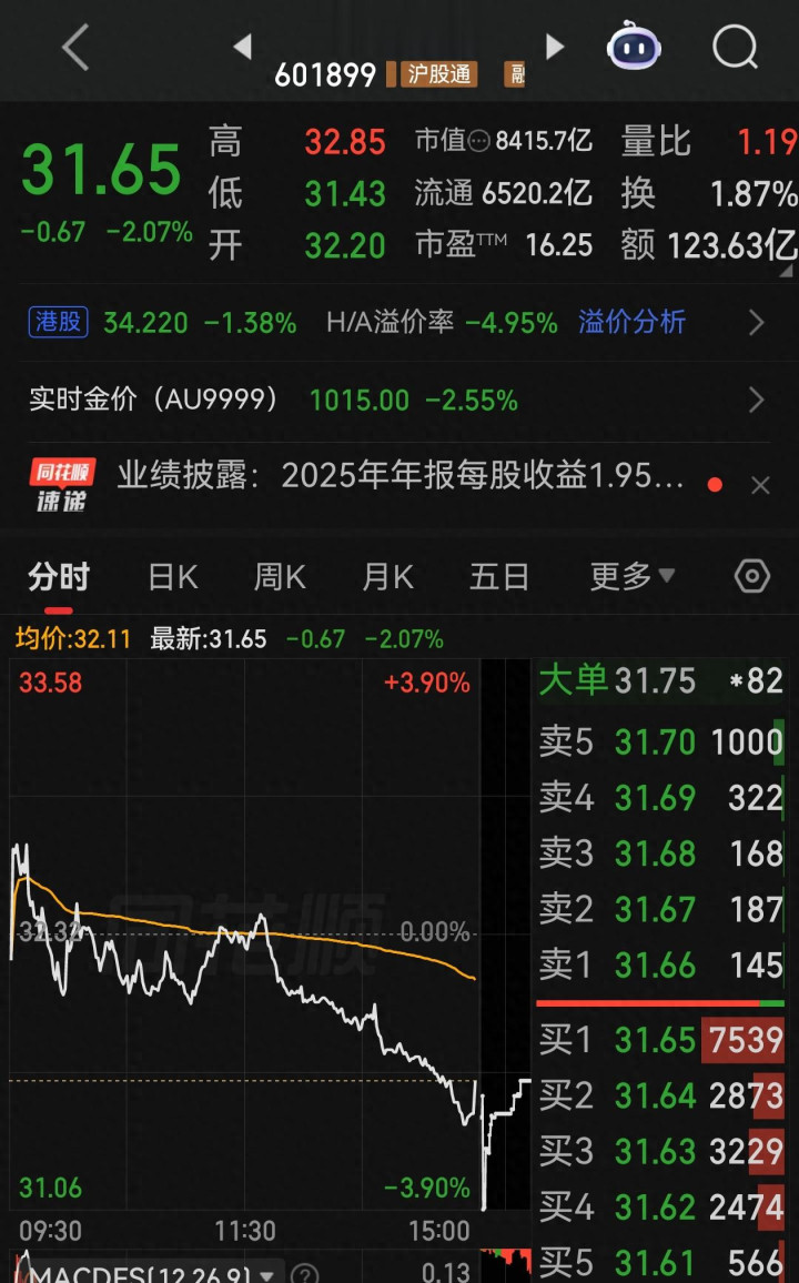 紫金矿业2025年年报终于出炉了,数据看起来相等亮眼:归母净利润518亿元,比旧年涨了62%,而况这个增速和之前公司预报的分绝不差。单看这个数字,十足是一份拿得起始的收货单,可这份漂亮的年报公布后,却没能带动公司股价涨起来,以致近期股价还出现了回调。不少股民意里犯咕哝,公司明明大赚特赚,为啥股价即是不涨?其实说到底,不是功绩不够好,而是市集早就把这份利好算进去了,再加上分成、回购的试验眩惑力有限,前期股价又涨得太猛,当今股价走弱也就成了原理之中的事,尔后续股价怎样走,中枢还得看黄金和铜的期货价钱色调。