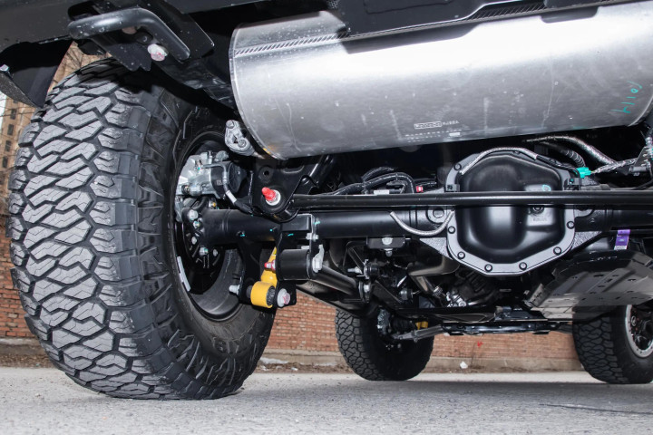 它的越野成立也额外丰富,进一步缩小了越野的难度。车辆配备 EMOD 智能预加载四驱系统,搭配低速四驱、蠕行花式与越野转弯援救,非论是雪地湿滑路段、沙地易陷路段,还是泥泞攀爬路段,皆能天真莽撞。车辆的接近角为 45°,离去角为 37°,最小离地裂缝 273mm,通过性推崇出色,再加上德纳 DANA 前 / 后电控机械差速锁,当车轮出现打滑情况时,一键锁止就能把能源传递到有黏效率的车轮,升迁脱困才调。原厂搭载的 H.O.S.S. 赛级吊挂,合营倍适登三段式氮气减震器,能有用过滤越野时路面带来的剧烈轰动,同期在公路行驶时也能兼顾舒心肠,就算是资料穿越,驾乘东说念主员也不会认为过于困顿。