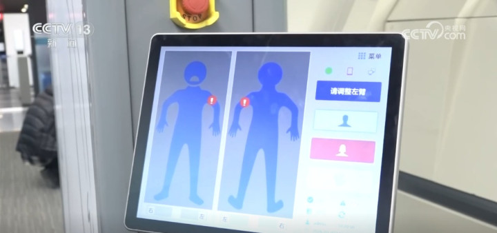 这是今年春运首次投用的A3毫米波门,“A3”是民航局最高级别安检认证。采用非接触式快速扫描,通常情况下3秒就能完成一个人的检测,还会生成全息成像图,要是有需要检查的部位,会在卡通人偶图上精准标记,保护了旅客的隐私。孙亚荣说:“从技术测试来看,A3级毫米波门识别精准、基本无盲区,从速度上也能实现“秒级”过检。”